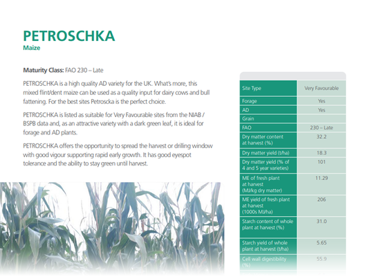 MOVANNA is DSV UK’s most consistent forage and AD variety. This vigorous, mid-harvest performer has a very robust agronomic package with excellent standing power and resistance to fusarium and eyespot, all of which means a healthy plant, even if harvest is delayed.