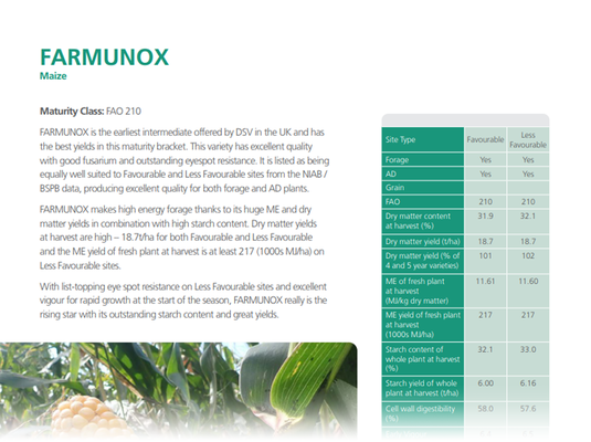 MOVANNA is DSV UK’s most consistent forage and AD variety. This vigorous, mid-harvest performer has a very robust agronomic package with excellent standing power and resistance to fusarium and eyespot, all of which means a healthy plant, even if harvest is delayed.