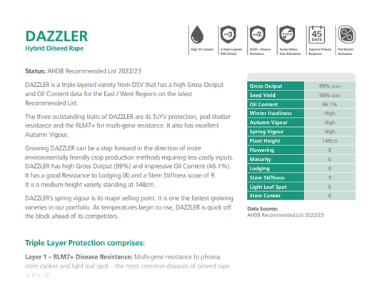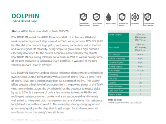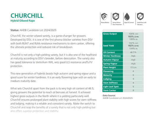 Churchill, the winter oilseed variety, is a game-changer for growers. Developed by DSV, it is one of the first phoma blocker varieties from DSV with both RLM7 and RLMs resistance mechanisms to stem canker, offering the ultimate protection and reduced risk of breakdown.